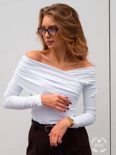 Bluze XS/S – po 500 dinara 1) Bela crop bluza sa dugim rukavima: - Materijal: glatka, rastegljiva tkanina - Kroj: kratka dužina, blago nabrani gornji deo, širok izrez preko ramena - Stil: romantič...