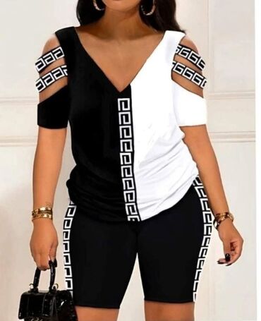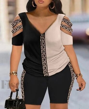 Dvoset ženske pletene kombinacije – džemper + suknja - Model: rebrasto pletivo, V-izrez, opušten džemper sa dužim rukavima i midi uska suknja visokog struka - Kroj: komforan gornji deo (blago “ove...
