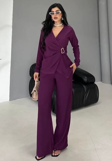 Ženski komplet – pleteni duks +gs pantalone sa otkrivenim ramenima - Dvodijelni set od rebrastog pletiva: široki top spuštenih ramena i ravne, komotne pantalone. - Elastičan, mekan materijal prija...