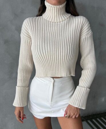 Ženski džemper s rol-kragnom – model S026 - Kroj: komotan, sa balon rukavima i spuštenim ramenima - Dizajn: izražen rebrasti/pleteni dezen; elastični završeci na rukavima i struku - Kragna: visoka...