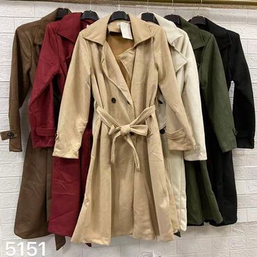 Ženski kaput – klasični trench kroj - Model: dugi kaput sa reverima i pojasom za vezivanje u struku - Kopčanje: skriveno dugmadima, pojas dodatno oblikuje siluetu - Detalji: dekorativne manžetne s...