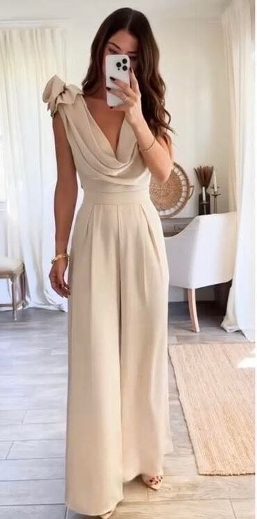Boohoo elegantni kombinezon za posebne prilike - Model: occasion kombinezon sa širokim nogavicama - Veličina: 36 (odgovara S–M) - Materijal: deblji saten sa blagim sjajem, prijatan i lepo pada - B...