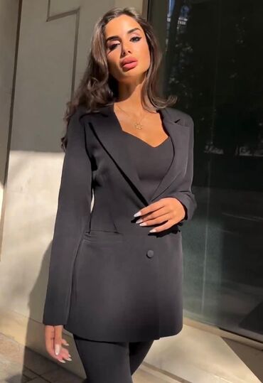Damski komplet – rebrasti pleteni duks i suknja, crna boja. - Materijal: elastičan, rebrasti plet (prijanja uz telo, udoban za celodnevno nošenje) - Gornji deo: duži duks/bluza sa okruglim izrezom...