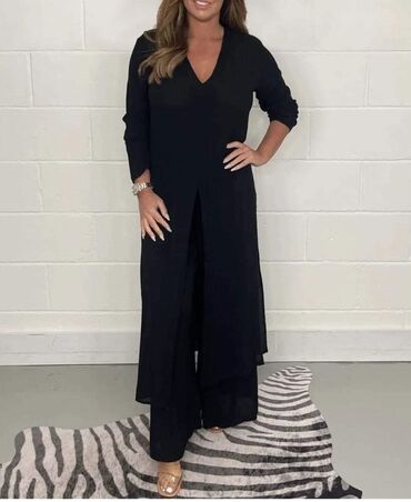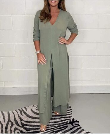 Ženski komplet trikotaza - Materijal: meka, elastična pletenina sa rebrastim, širokim pojasom na struku i manžetnama za udobno pristajanje. - Gornji deo: dugački rukavi, blago opušten kroj sa skupl...