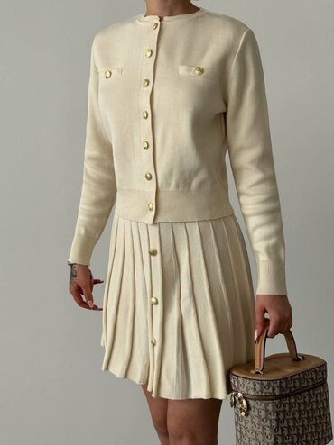 Damski komplet – rolka i suknja, krem/bela boja. - Gornji deo: pripijena ženska rolka od rebrastog pletiva, dugi rukavi, elastična struktura koja lepo prati liniju tela. Visoka rol-kragna sa blagi...3 000 RSD