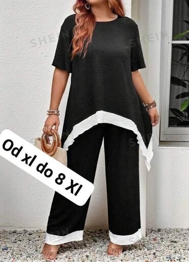 💫Ženski komplet – asimetrična bluzica i široke pantalone ✅Cena 2700din ✅Vel 0XL,1XL,2XL,3XL,4XL