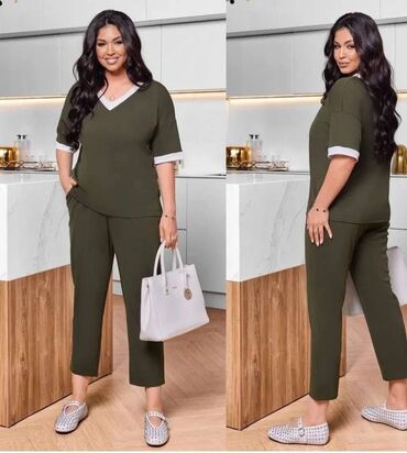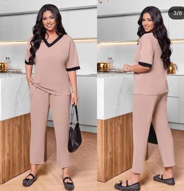 Ženski rebrasti komplet – džemper i pantalone, univerzalna veličina - Dvoddelni set od prijatnog, elastičnog rebrastog pletiva - Gornji deo: uska silueta sa visokim okovratnikom, zvonastim rukavi...