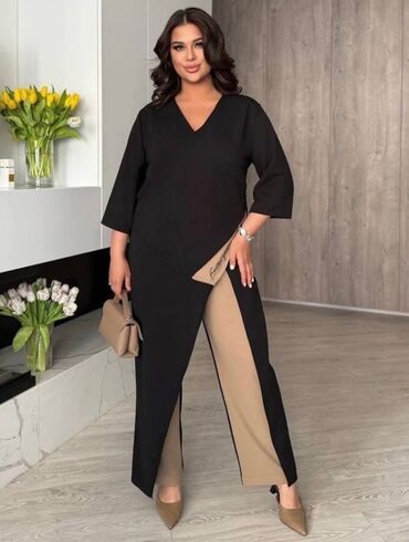 Damski komplet suknja + blejzer/jaknica, tamnoplave boje. - Materijal: mekana, teksturisana tkanina (bouclé/plišasti izgled), topla i prijatna na dodir. - Jakna: dugi rukavi, okrugli izrez bez rev...
