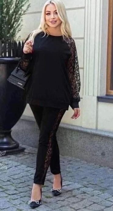 Komplet tunika i pantalone 4500 Veličine: 38 • 40 • 42 • 44 • 46 • 48 Materijal: Aerobin – lagan, prijatan. Mere za veličinu 48: obim grudi 120 cm