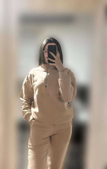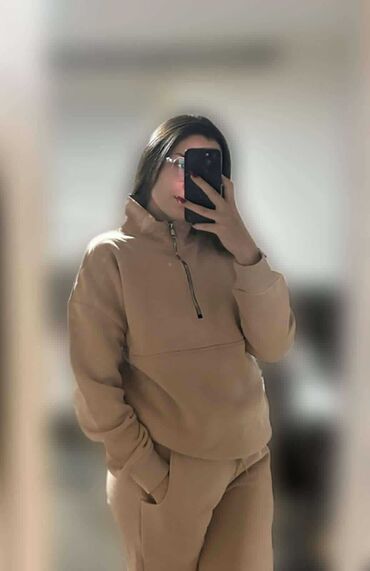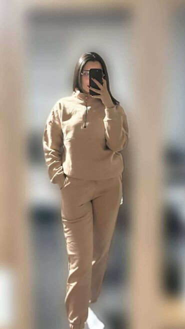 Ženski komplet – rebrasti duks i helanke, bež/ekru nijansa. - Materijal: meka, elastična rebrasta pletiva koja prijanja uz telo i pruža udobnost tokom celog dana. - Kroj duksa: duži, ravnog kroja ...