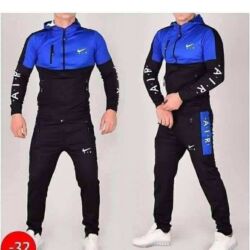 Muška sportska trenerka marke Nike, sastoji se od jakne sa kapuljačom i donjeg dela. Jakna je upečatljivog dizajna, podeljena na dve boje: jedna polovina je svetlosiva, a druga bela. Na prednjoj st...