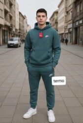 Muški termo trenerka komplet sa kapuljačom - Model: dukserica s kapuljačom + donji deo sa elastikom na struku i nogavicama - Materijal: termo/fleks toplo postavljen – prijatan za hladnije vreme - ...