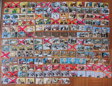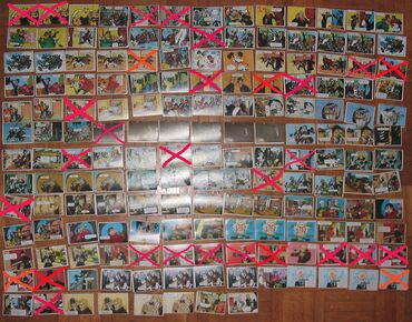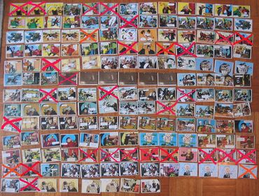 Sličice Alan Ford koje su stajale u fioci preko 35 godina. U to vreme je kupljen album za popunjavanje, kupljeno je dosta kesica ali album nikad nije popunjen (album nije na prodaju). Ove sličice su bile duplikati za moj album. Sličice su `žive` tj. nelepljene, u odličnom stanju. Garantujem da su u pitanju original sličice. Za bilo koju sličicu mozete da zatrazite detaljni snimak izbliza. U pitanju su brojevi: