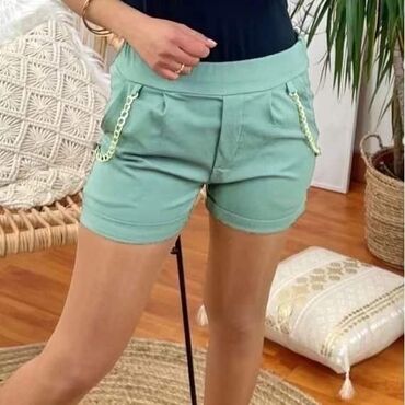 Ženske šorts farmerke u mint zelenoj boji.-obim struka 78cm - Visoki struk sa petljama za kaiš - Klasičan džins kroj sa pet džepova (dva napred + mali novčanik džep, dva pozadi) - Metalno dugme i ...