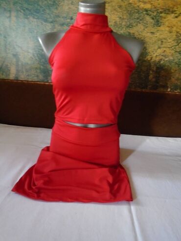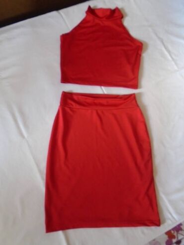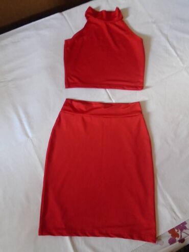 JednobojniCrveni tegljivi set, top i suknjica, S veličine.