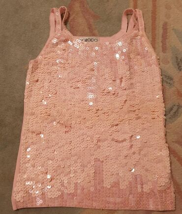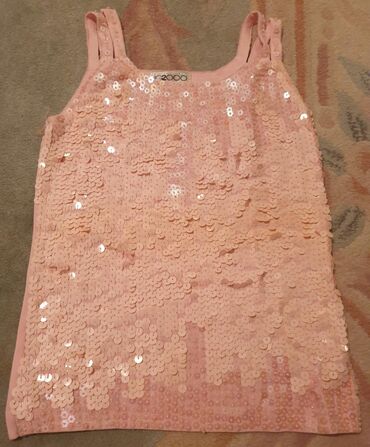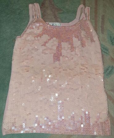 ŠljokiceSvetlo roze majica, nezna, sa sljokicama napred, blago sijaju mestimicno, kao pisi brisi, ali svecana. Mozda sam je 1x nosila, bas nova. Za S - M velicinu.