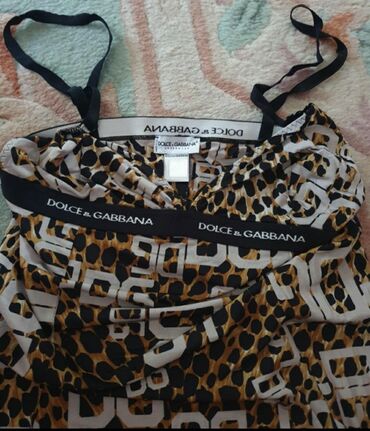 Ženski prsluk/majica bez rukava sa printom - Model: bez rukava, blago nabran gornji deo sa trakom/vezicom oko vrata - Dizajn: tamna podloga sa sitnim cvetnim/geometrijskim motivima u žuto-belim to...