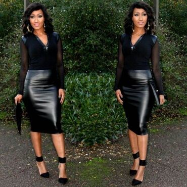 Elegantna crna suknja olovka sa detaljima,velicina 42. - Kroj: olovka/uža silueta, dužina iznad kolena do kolena - Dizajn: dekorativni kontrastni šavovi koji vizuelno izdužuju figuru - Ukras: sate...