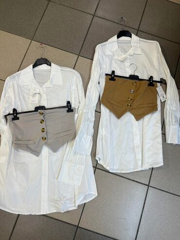 Elegantna ženska bluza sa visokim okovratnikom i dekorativnim naborima. - Model: dugački rukavi sa izraženim manžetnama i zlatnim dugmetom na rukavu - Ramena sa blagim puf efektom - Asimetrično na...