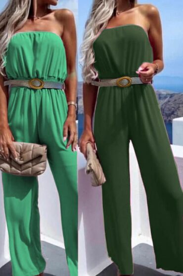 Ženski jednodelni kombinezon – strapless model - Boja: tamno braon - Kroj: bez bretela (bandeau) sa elastičnim gornjim rubom - Pojas: traka/vez koji se zateže u struku za isticanje siluete - Donji...
