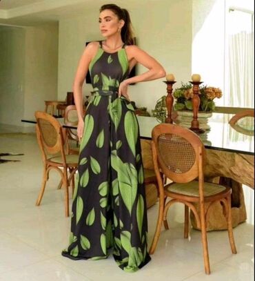 Elegantan ženski kombinezon bez rukava sa širokim nogavicama i V-izrezom. Dizajniran sa širokom kragnom i velikim, ukrasnim dugmadima zlatne boje, koja dodaju sofisticiranu notu. Kombinezon ima pra...