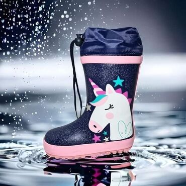 Dečje gumene čizme sa dezenom dinosaurusa - Veličina: 29 (otisnuto na đonu) - Materijal: vodootporna guma/spolja, topla unutrašnja postava - Zatvaranje pri vrhu: učkur sa kočnicom za bolje prijanj...