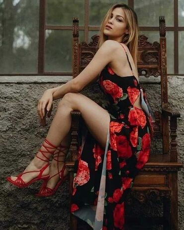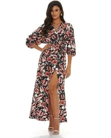 Elegantna večernja haljina – crna, duga, sa dramatičnim šlepom i visokim šlicem. - Kroj: sirena/suknja sa naborima napred, visoki otvor na butini, produženi asimetrični šlep sa strane. - Gornji de...