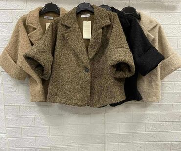 Ženski kraći kaput 13006 - Model: kratki kaput/oversize jakna sa pojasom za vezivanje u struku - Kroj: širi rameni deo, dugi rukavi, izražen rever, dužina do ispod kukova - Kopčanje: skriveno dugm...