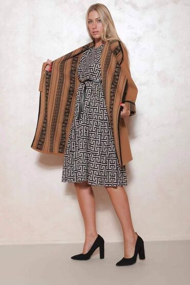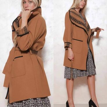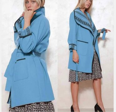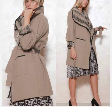 Dugački ženski kaput/treč u maslinasto‑zelenoj boji. - Materijal: tipski pamučni keper sa blagim sjajem (nepromočivi izgled). - Kroj: A-linija, raskošniji donji deo sa lepršavim padom. - Kopčanje:...