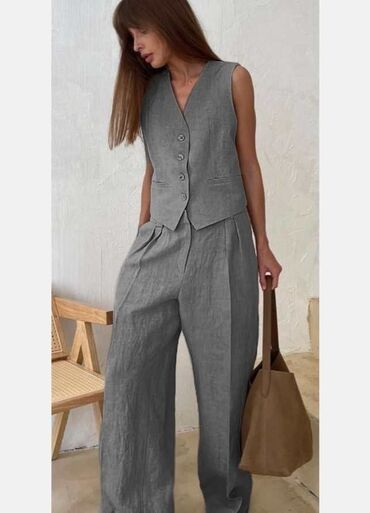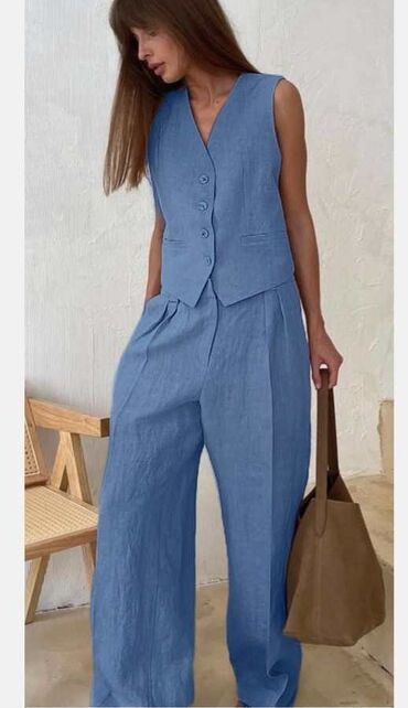 Komplet, potpuno nova suknja i sasvim ocuvan dzemper, bez ikakvih ostecenja. Suknja se ne tegli, bez pojasa, tako da moze da se spusti ili podigne. Dzemper tricetvrt rukavi, tegli se, bio je veoma ...