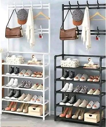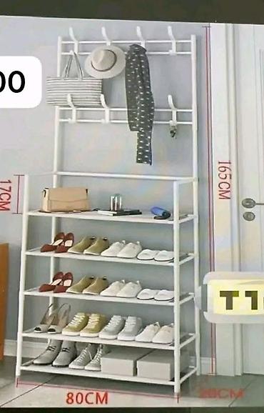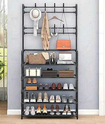 Police za cipele u 5 nivoa i čiviluk u 2 reda za odlaganje odeće, ključeva i drugih stvari. Izradjeno od metalnih stanglica, brzo i lako sastavljanje.
