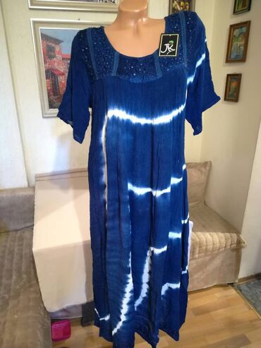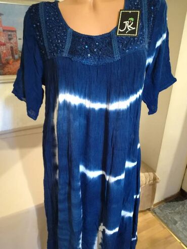 Nova zenska indijska haljina za punije dame i devojke Nini. Indijska. Odlicna indijska zenska haljina za punije devojke i dame svih generacija. Vrlo lepog dezena, prijatna za nosenje, uradjena od veoma kvalitetnog materijala. Moze se nositi u svim prilikama. Haljina je uradjena od laganijeg materijala, idealna za svecane prilike. Haljina poseduje ukrase u vidu bisera napred na grudima i ramenima kao i lepu saru na prednjoj strani haljine. Dobra zenska haljina za svecane i posebne prilike. Indijska haljina za punije dame i devojke Nini je nova sa etiketom.
