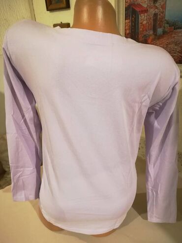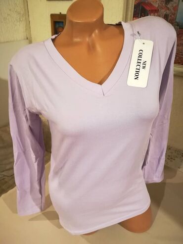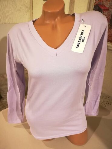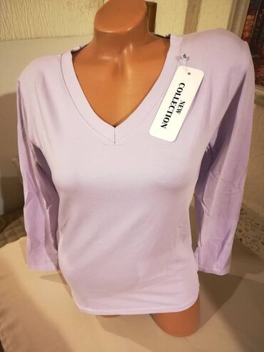 Ženska odeća – više modela 1) Svetloplava majica s V-izrezom i dugim rukavima - Veličina: S - Dužina: 48 cm - Poluobim: 31–55 cm - Cena: 140 din 2) Braon majica s dugim rukavima i dugmićima na de...250 RSD