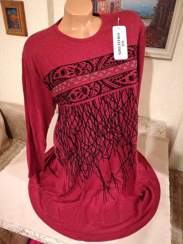 Nova zenska tunika za punije dame i devojke Rumeysa. Turska proizvodnja. Odlicna zenska tunika za devojke i dame svih generacija. Uradjena od kvalitetnog i prirodnog materijala, vrlo prijatna za nosenje. Rastegljiva, prati liniju tela. Lagana i kvalitetna tunika sa sarom za punije dame i devojke, moze se nositi svaki dan, idealna za posebne i svecane prilike. Tunika ima saru sa prednje strane kao i ukras od bisercica na grudima. Zenska tunika Rumeysa za punije dame i devojke je nova sa etiketom.