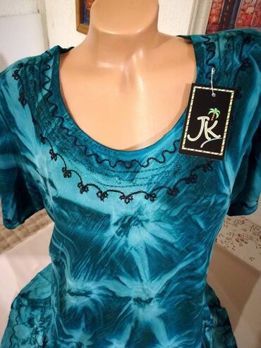 O trošku kupcaPokupiti na licu mestaNova zenska indijska tunika za punije dame Nini. Odlicna zenska tunika za punije devojke i dame svih uzrasta. Idealna zenska tunika za posebne i svecane prilike, vrlo elegantna i lepa. Izradjena je od kvalitetnog i prirodnog materijala. Super ide na pantalone, helanke i farmerke. Tunika ima ukrasni vez na grudima i ramenima kao i na rukavima. Idealno stoji punijim osobama. Dobra zenska tunika za svaki dan, odlicna za razne vrste svecanosti. Zenska indijska tunika za punije dame Nini je nova sa etiketom.