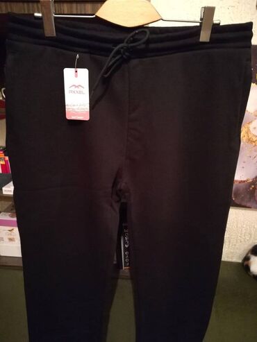 Ženske tamno sive helanke, S/M veličina. NOVE. - Materijal: mekana, elastična pamučna mešavina (džersi/pletenina) prijatna za svakodnevno nošenje. - Boja: antracit siva. - Kroj: slim/jogger stil s...