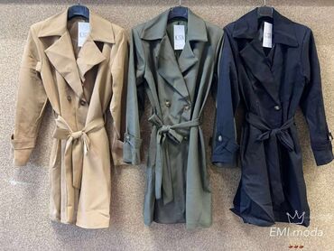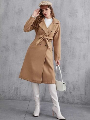 Bež dvoredni mantil (trench) klasičnog kroja. - Boja: pesak/bež - Kopčanje: dvoredno sa crnim dugmadima - Kragna sa reverima, epoletama na ramenima i štitnikom za vetar na leđima - Pojas u struku ...