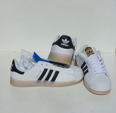 Adidas patike – sportsko-lifestyle model - Boja: pretežno bela sa svetlozelenim (neon) Adidas tri pruge sa strane i sivim detaljima na đonu i jeziku - Materijal gornjišta: kombinacija kože/sinteti...