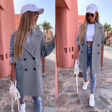 Ženski kaput – oversize kroj, dužina do iznad kolena, dvoredno kopčanje. - Model: klasični ravni kroj sa širokim reverima - Kopčanje: dvoredno, 4 dugmeta napred - Džepovi: dva bočna sa preklopom -...