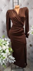 Elegantne haljine – set od 3 komada 1) Svečana siva haljina sa šalom - Dugački model od laganog, lepršavog šifona - Gornji deo sa V-izrezom ukrašen zlatnim šljokicama - Širok pojas naglašava struk...