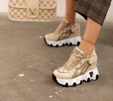 Visoke patike sa platformom – bež/smeđe - Dizajn: moderni high‑top model sa višeslojnim panelima u tonovima taupe, bež i svetlo braon. Dekorativni prošivi i kontrastne bele pertle koje obmotavaju ...