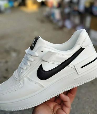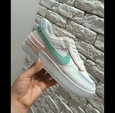 • Nike kožne patike – visok model, bele sa srebrnim panelima, br