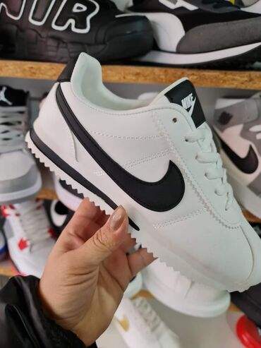 Nike bele patike – klasičan kožni model Ug25cm - Boja: čisto bela - Materijal gornjišta: glatka koža sa dekorativnim šavovima - Logo: Nike Swoosh sa obe strane - Vezivanje: klasične bele pertle kr...