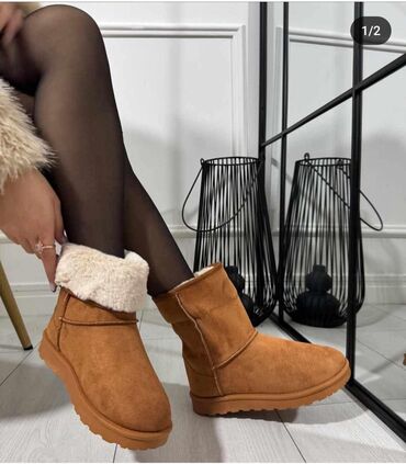 Ženske zimske čizme – karamel smeđa boja - Stil: kratke “snow” čizme sa ravnim, povišenim đonom - Materijal gornjišta: kombinacija brušene eko kože (donji deo) i meke, elastične tkanine/glatke eko...