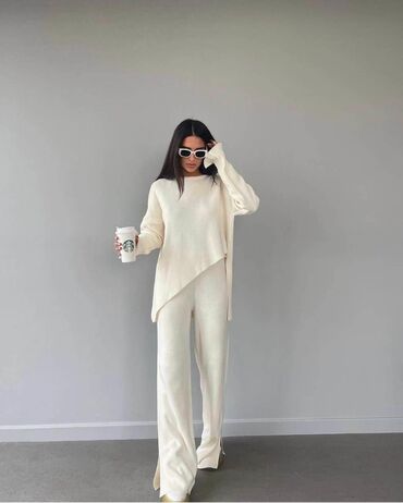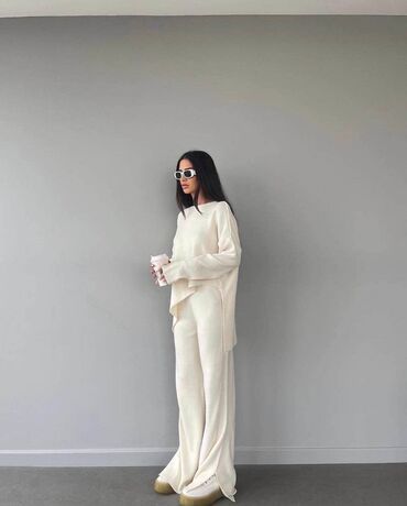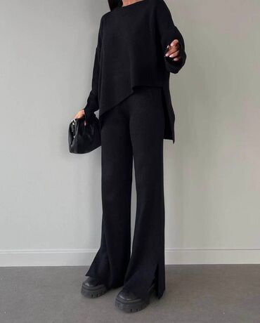 💫Ženski komplet – asimetrična bluzica i široke pantalone ✅Cena