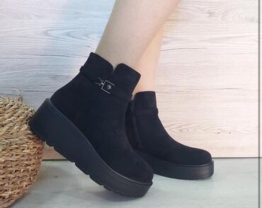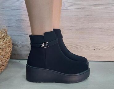 Crne kratke čizme/ankle boot model sa platformom - Materijal gornjišta: mekana brušena koža (semiš) sa elastičnim neopren/rib delom oko zgloba za lako obuvanje - Boja: potpuno crna, sa kontrastnim...