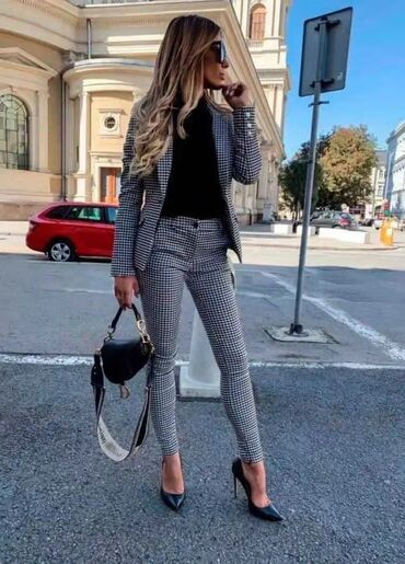 Poslovni komplet Barbosa Komplet sako i suknja, veličina 38. Boja teget Dimenzije sakoa - Širina ramena 41cm - Dužina leđa 65cm - Obim grudi 92cm - Dužina rukava 62c...