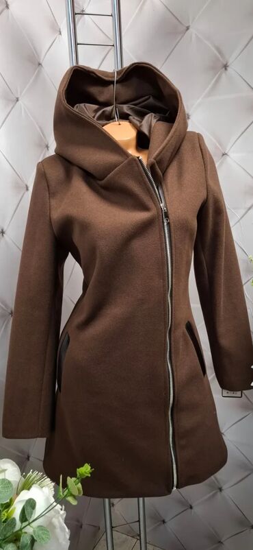 Ženski kaput s kapuljačom – duffle stil - Brend: Stil Mode - Veličina: 36 - Boja: bež/kamel - Kroj: ravna linija do iznad kolena, sa dekorativnim paspulom duž ivica - Kopčanje: kombinacija central...