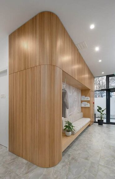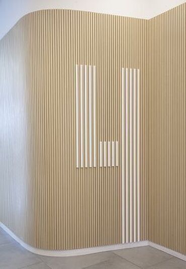3D fleksibilni zidni paneli „Tranquillo“ se oblikuju prema specifičnim potrebama prostora, prateći njegove linije i prirodni oblik zidova i stubova. Zahvaljujući mogućnosti oblikovanja zakrivljenih površina , ovi paneli prevazilaze ograničenja tradicionalnih zidova. Umesto oštrih prelaza i pravih uglova, prostor dobija meke prelaze koji stvaraju skladan osećaj povezanosti bez prekida i spojeva. Savitljivi paneli posebno su pogodni kada želimo postići da zidne površine izgledaju kao jedna celina, bez prekida i spojeva. Zahvaljujući vertikalnim 3D letvicama i konstrukciji prilagođenoj montaži prema obliku površine , ovaj sistem se jednostavno integriše u različite enterijere – stanove, restorane, čekaonice ili hotelske lobije. Osim što vizuelno oplemenjuje zid , „Tranquillo“ panel diskretno smanjuje akustični odjek bez potrebe za velikim građevinskim radovima.