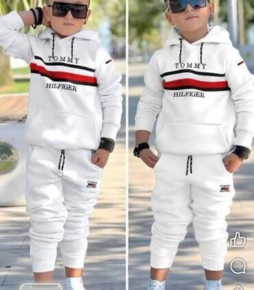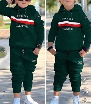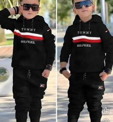 Dečiji komplet trenerke – gornji deo sa kapuljačom i donji deo (dug model) sa džepovima. Od 4god do 12 god - Dizajn: prepoznatljive pruge u crnoj, beloj i crvenoj boji preko grudi; natpis “TOMMY HI...